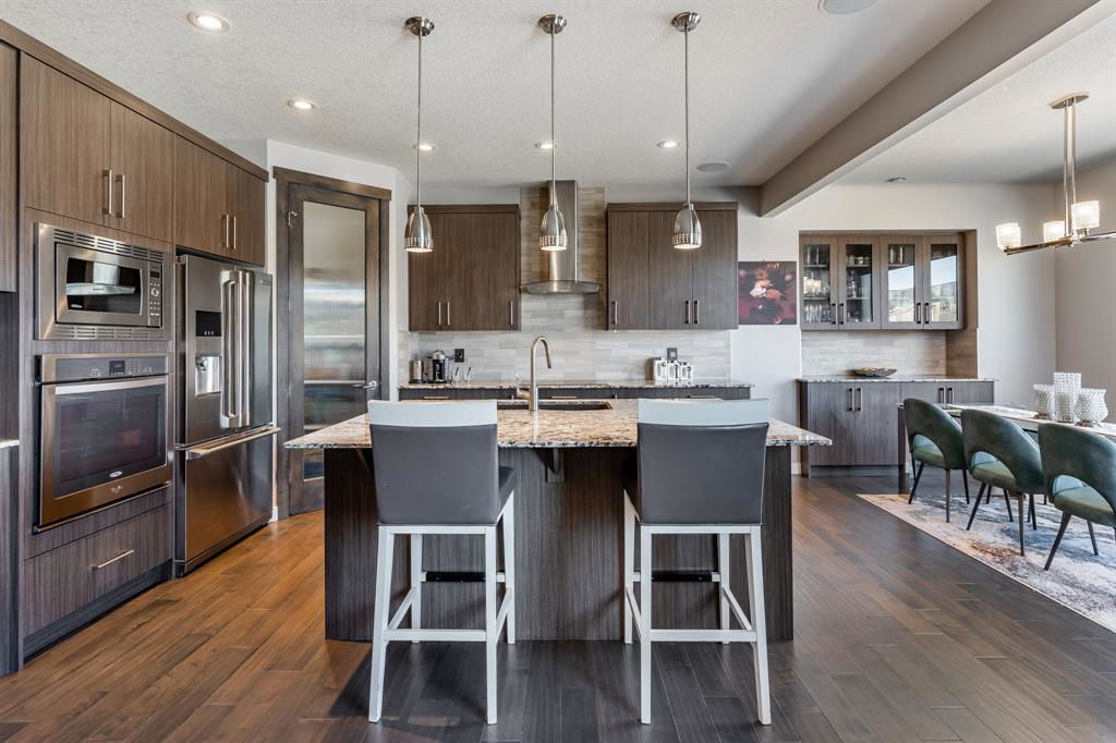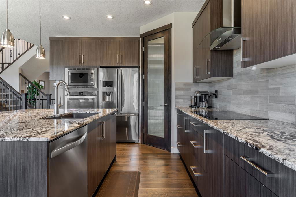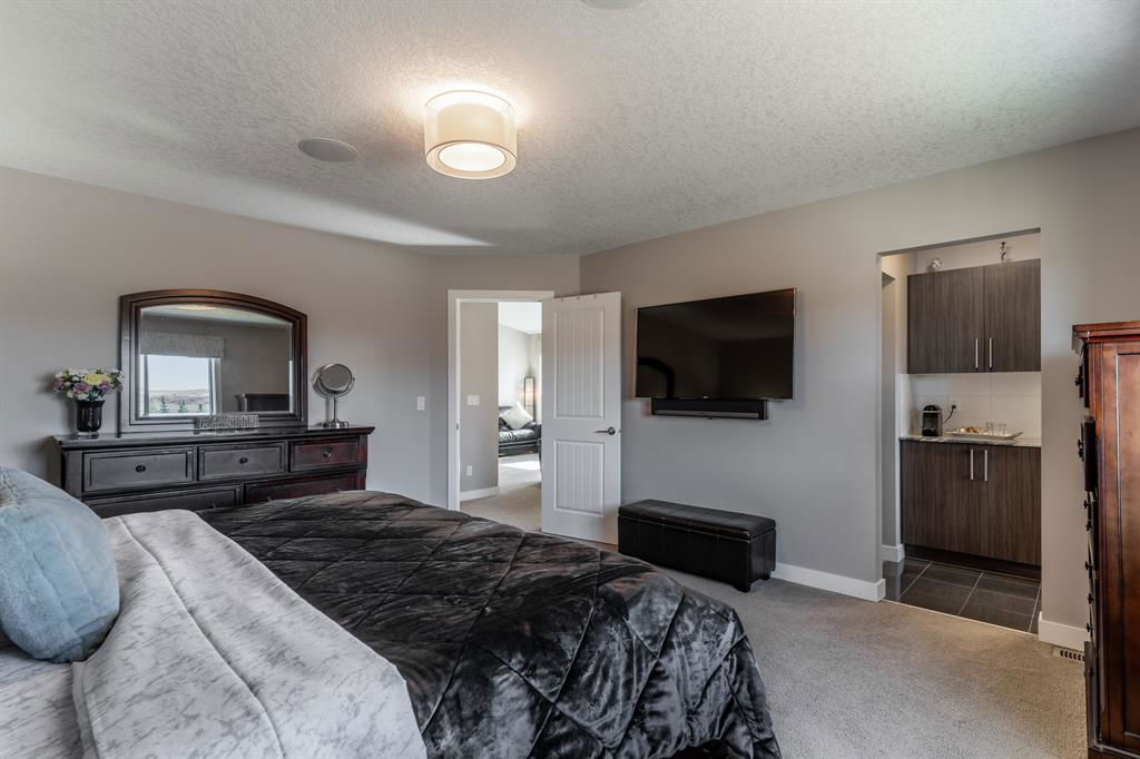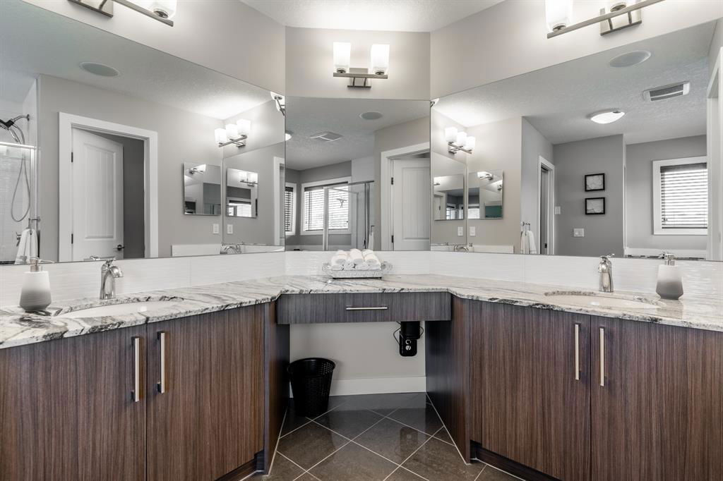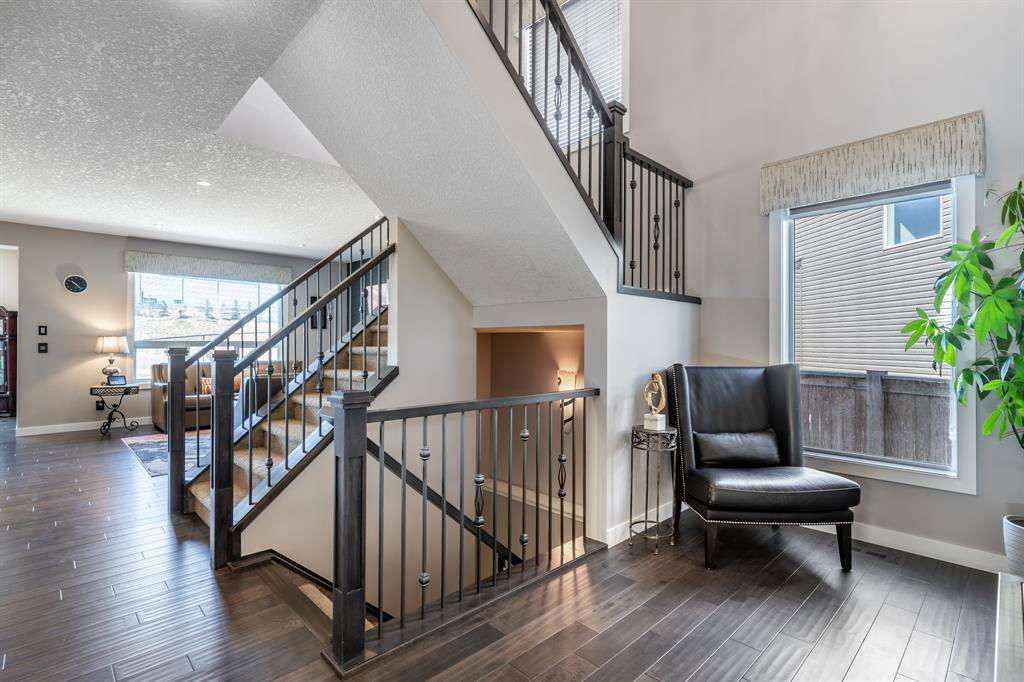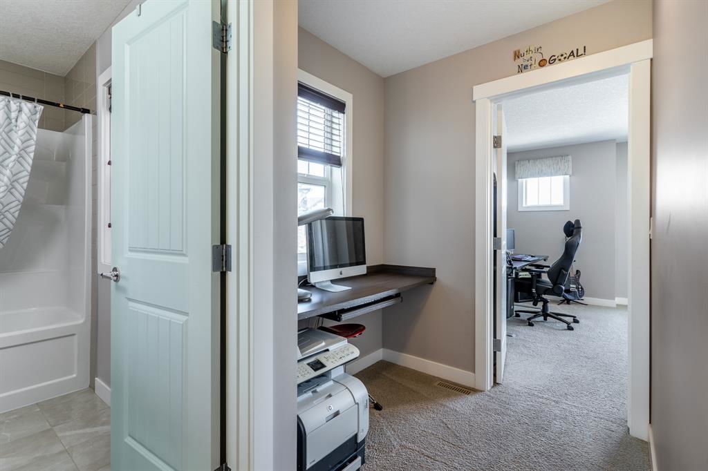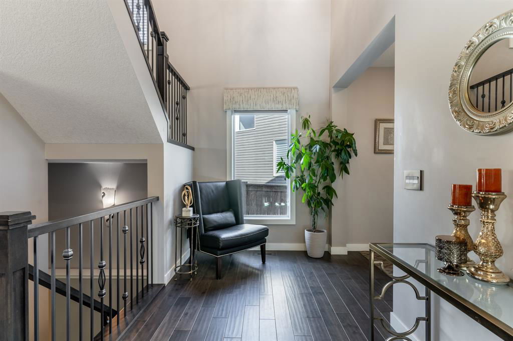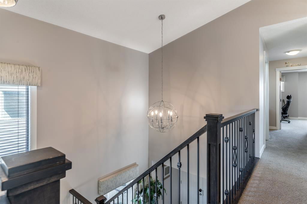 PRIME Cul-de-Sac location on a huge pie lot backing ravine & pathways – Welcome home to 127 Nolanshire Pt NW! Showcasing 5 bedrooms, 4 bathrooms, office/den, FULLY FINISHED basement, upper bonus living space, and numerous UPGRADES & designer finishings throughout! The main level is bright & open with views of the ravine & pathways in the distance. The gourmet kitchen is complete with premium stainless steel appliances, sleek custom cabinetry, a spacious island & corner pantry that leads to a SECOND KITCHEN (spice kitchen) & butlers pantry! The dining room features custom built-ins & living room is the perfect spot to unwind in front of the gas fireplace. An additional den, 2-piece bath, spacious foyer, and mudroom complete the main level. Upstairs you will find the thoughtfully designed primary suite showcasing a spa-like 5-piece ensuite with a corner soaker tub, walk-in shower, dual vanities, and enormous walk-in closet. Two additional bedrooms each with walk-in closets, a full 4-piece bath, a 2nd-floor laundry room with built-ins and sink, and additional living space with more custom built-ins complete the upper level. Downstairs you will find the FULLY FINISHED basement complete with a large open recreation space, bedroom, office/den/bedroom, and full 4-piece bathroom. Basement heating vents have been brought to the floor making it extra comfortable & wet bar rough-in gives opportunities for further development. Your spacious backyard offers easy access to nature backing onto the neighbourhood pathways/ravine and no neighbors behind! The outdoor space is south facing & features a huge green space, deck, and shed. The amazing cul-de-sac location makes it easy to meet the friendly & supportive neighbors and no road noise! Additional features include a double attached garage with 220V EV charger, future-focused solar panels, built-in automation/speaker wiring/cameras, water softener, high-end electrical switches, Central AC, Central Vac & Dual Zone furnace. This stunning home has it ALL and won’t last long – book your viewing today!!!